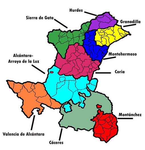 aumentando progresivamente desde la Sierra de Gata, Hurdes y Béjar al norte hacia el sur de